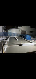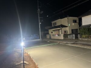 寒くなるとコンクリートの乾きが遅くて外が真っ暗に💦ライト段取りして 二回目の押さえ待ち